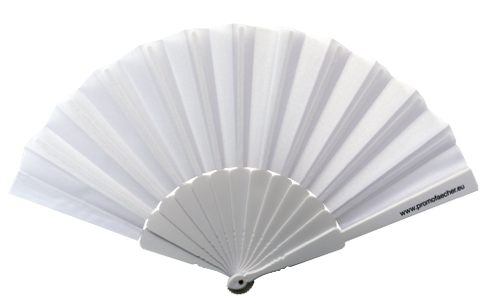 Der Handfächer aus Plastik mit Stoffbezug ist schon ab 50 Stück am Rahmen 1- oder 2-farbig bedruckbar.
