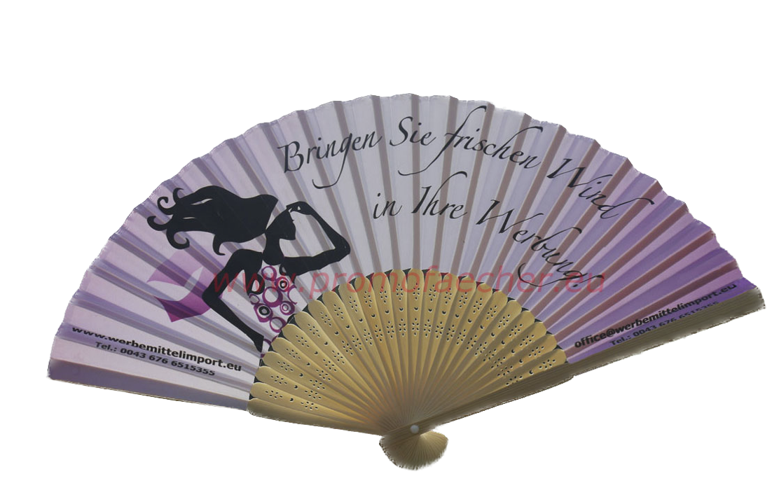 Handfächer bedruckt für Ihre Promotion! Wir, die Firma Lindner Werbemittel liefern Ihnen Handfächer, Hochzeitsfächer, bedruckte Werbefächer, Ballfächer und Partyfächer - gestaltet nach Ihren Wünschen. Bei uns erhalten Sie bedruckte Handfächer verschiedenster Ausführungen - die optimalen Werbeträger! Unsere Fächer sind ebenso als Hochzeitsdeko oder als Give - away geeignet. Individuell bedruckte Handfächer lieferbar, zugeschnitten auf Ihre Bedürfnisse. Ihr personalisiert bedruckter Fächer schon ab 50 Stück lieferbar.